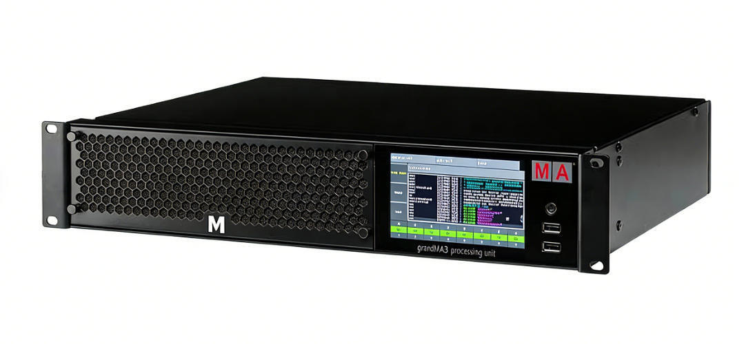 Die grandMA3 Processing Unit M bietet professionelle Lichtsteuerungsfunktionen mit fortschrittlicher Parameterverwaltung und umfassenden Anschlussmöglichkeiten für anspruchsvolle Produktionsumgebungen.